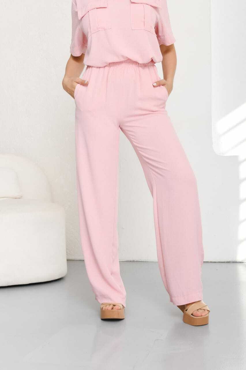 Este pantalon es un clasico palazo de crep cey con bolsillos laterales y elastico en la cintura que ayuda para un mejor ajuste y comodidad. Ideal para un estilo casual y comodo.